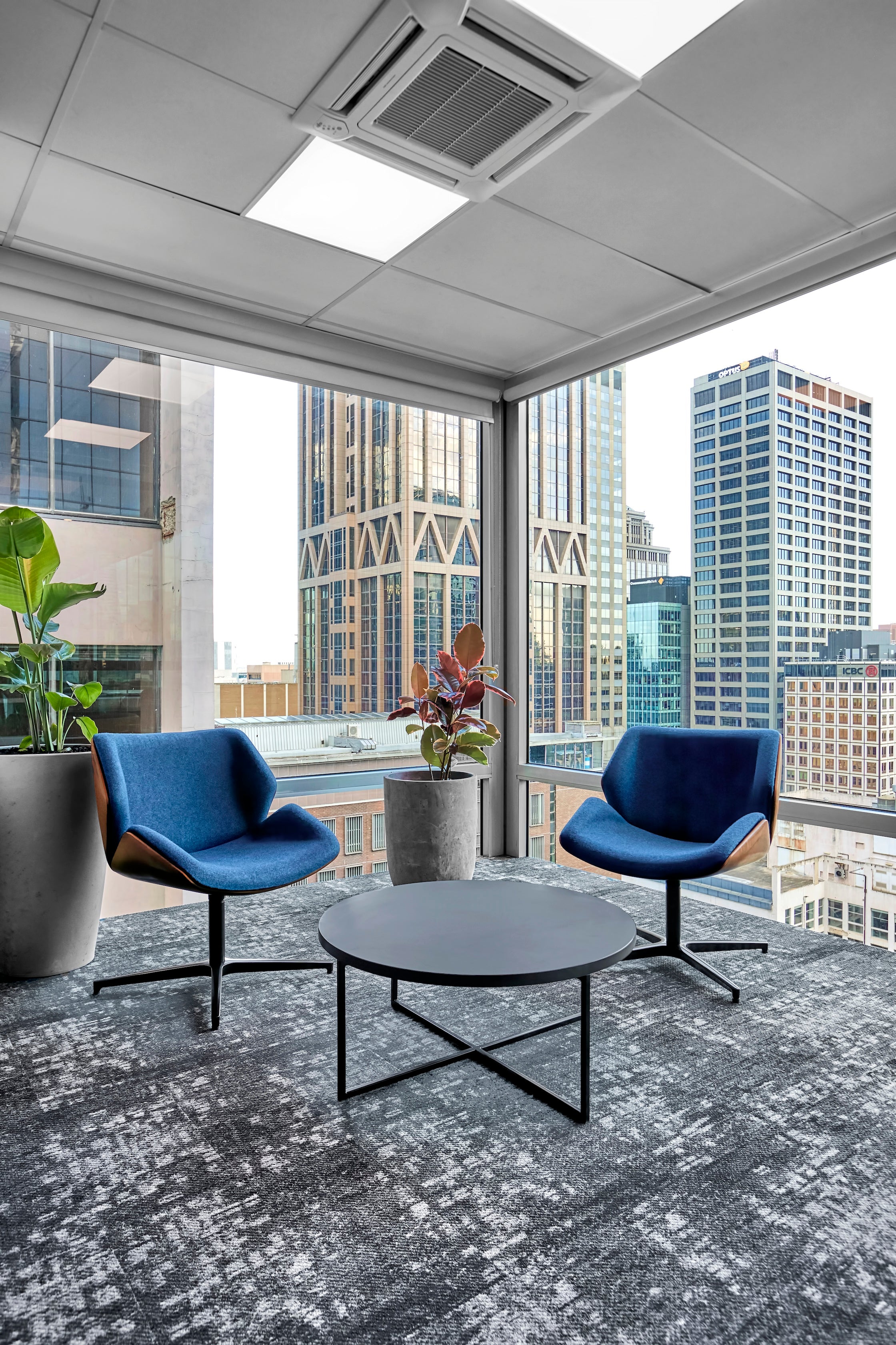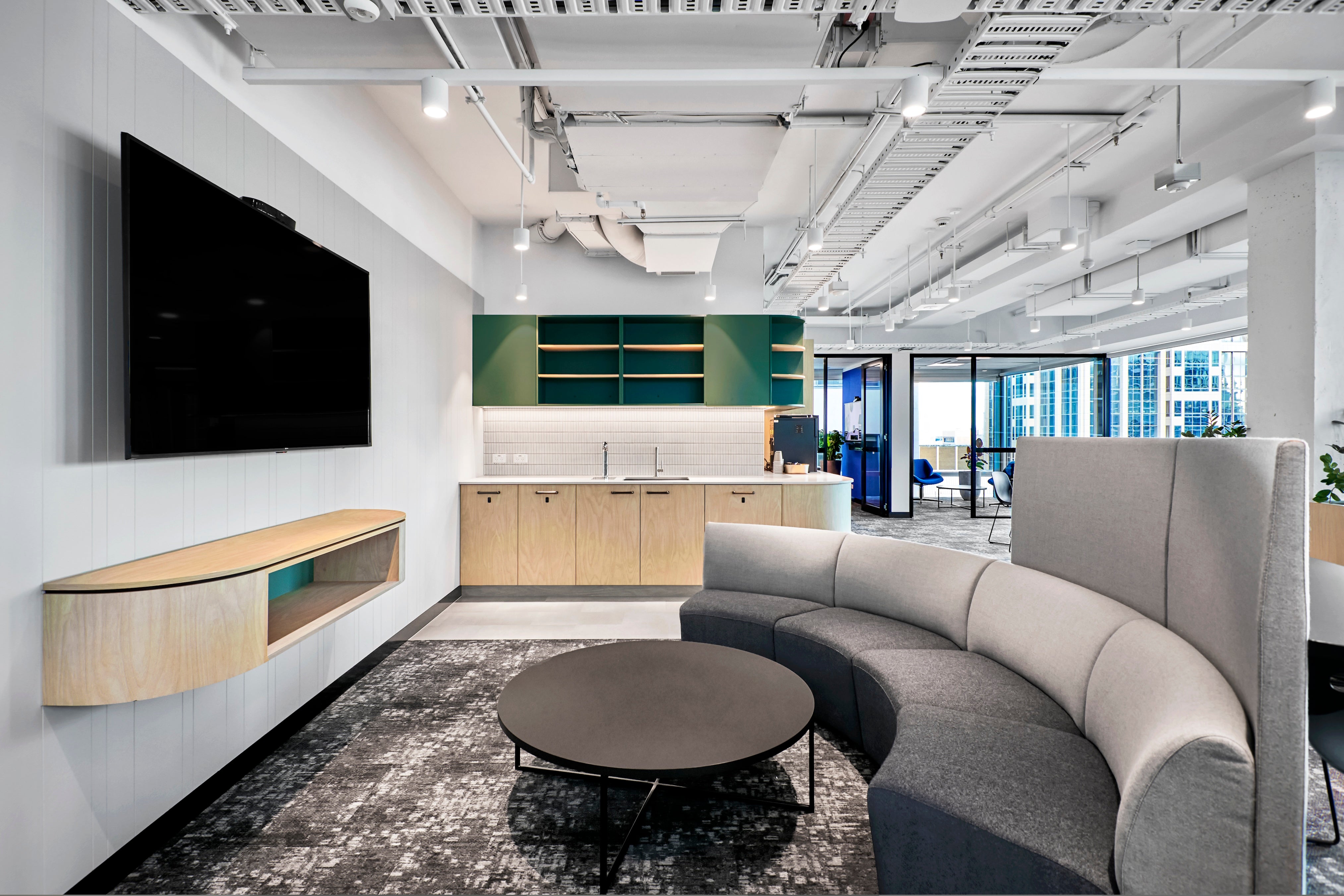 This gorgeous Eagle House office stands out with bold blue accents and open collaborative areas. A great example of how a simple floorplan can be transformed with the right furniture solutions.